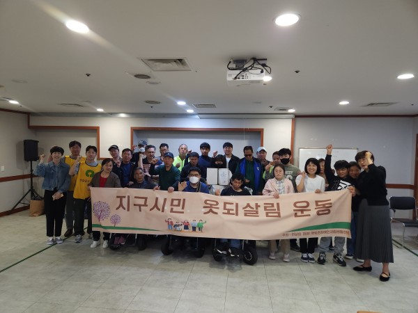 2025년 04월 23일 지구시민 옷되살림운동(헌옷수거전달식) 페이지 정보 작성자 햇빛촌 조회 334회 작성일 25-05-30 15:08 본문 2025년 04월 23일 지구시민 옷되살림운동(헌옷수거전달식) 목록 이전글2025년 04월 28일 댄스교실(살세이션) 25.05.30 다음글2025년 04월 14일 현수막 제작(장애인도 시민으로 이동하는 민주주의) 25.05.30 댓글목록 댓글목록 등록된 댓글이 없습니다.