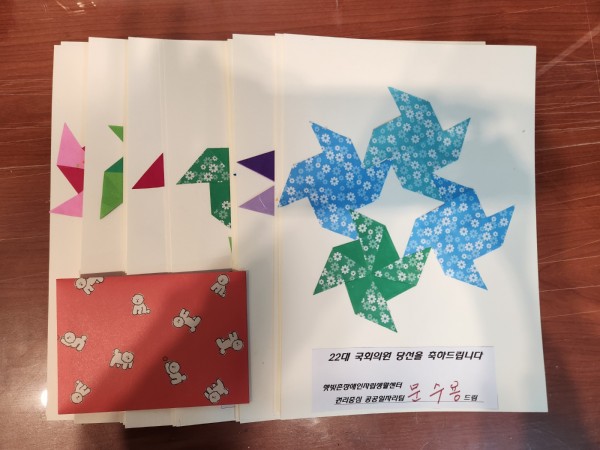 22대 국회의원 당선인(한준호,김영환)께 권리중심 근로자분들이 당선축하편지를 썼다.