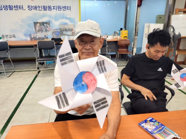 2023.0810. 광복절 기념 태극기 바람개비 만들기 페이지 정보 작성자 햇빛촌 조회 571회 작성일 23-08-16 11:37 본문 광복절을 기념하여 태극기 바람개비 만들기 진행 목록 이전글2023년 09월 08일무지개 꾸미기 협업 활동 23.09.14 다음글2023년 08월 01일 패럴영화제 시사회 23.08.10 댓글목록 댓글목록 등록된 댓글이 없습니다.