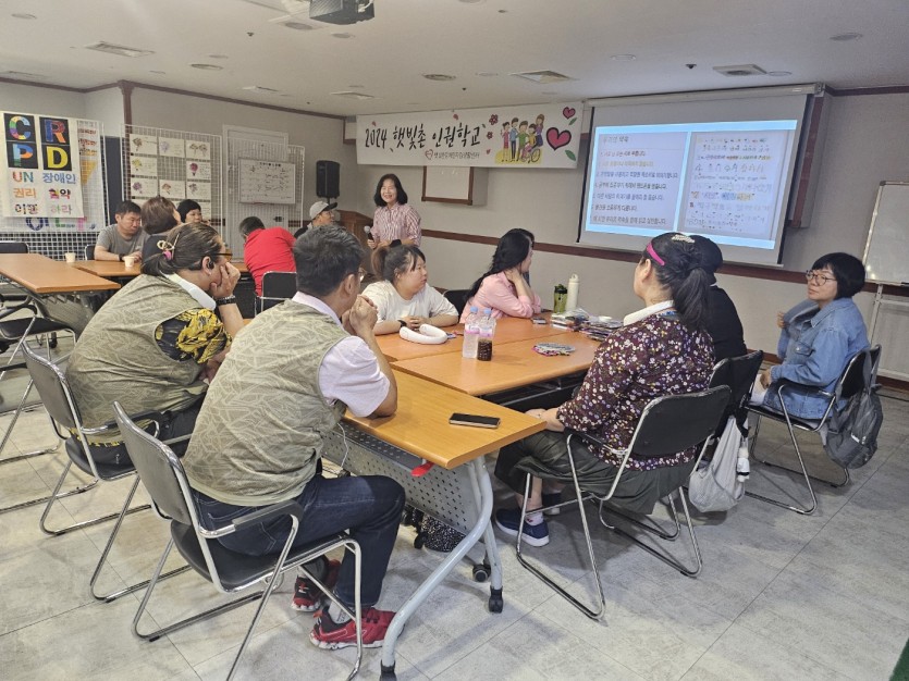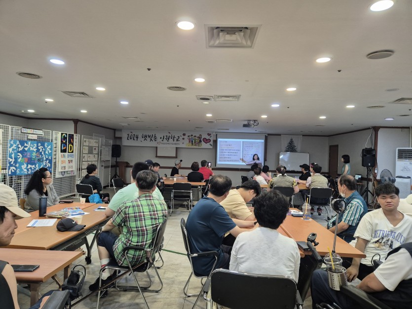 2024.07.24 햇빛촌 인권학교 1회기 페이지 정보 작성자 햇빛촌 조회 367회 작성일 24-07-26 16:09 본문 2024 '나도 빛난다' 햇빛촌 인권학교 1회기 목록 이전글장애인 맞춤형 운동 교실 24.08.12 다음글2024년 7월 17일 상반기IL사업평가회 24.07.18
