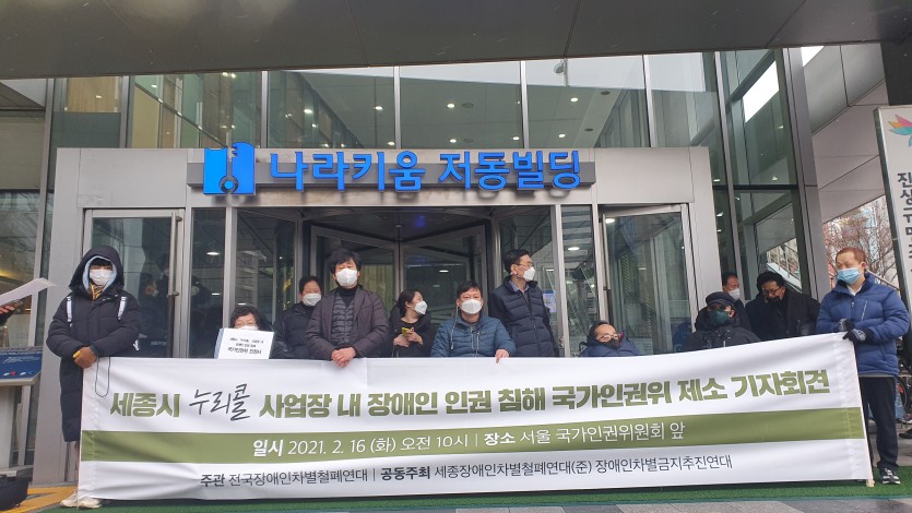 2021년 02월 16일 세종시 누리콜 사업장 내 장애인 인권 침해 국가인권위 제소 기자회견