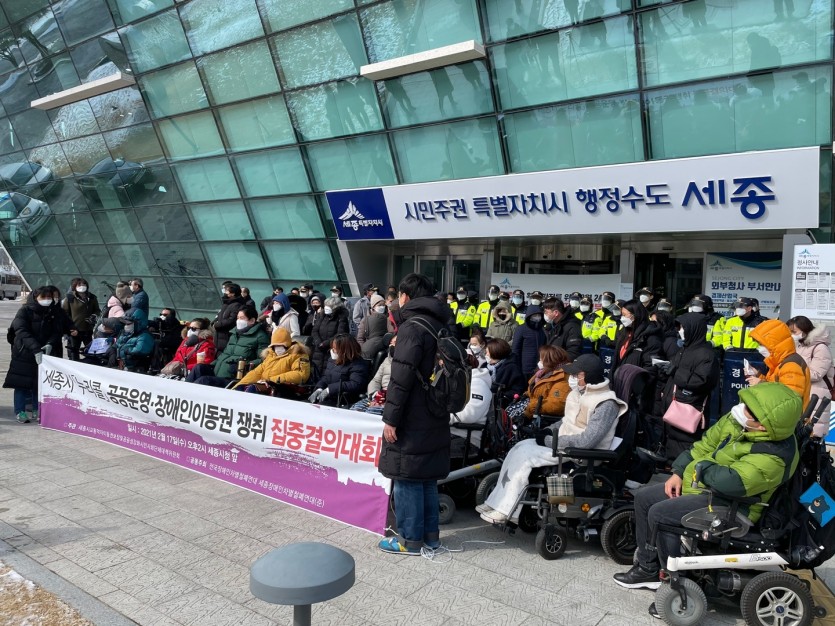 2021년 02월 17일 세종시 누리콜 공공운영, 장애인 이동권 쟁취 집중 결의대회