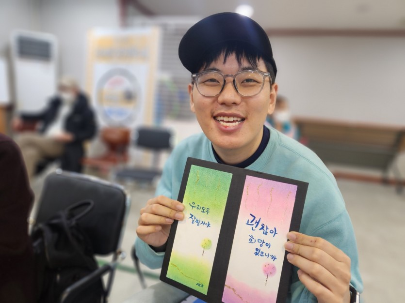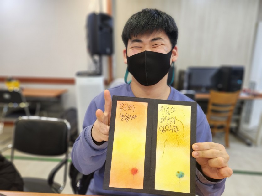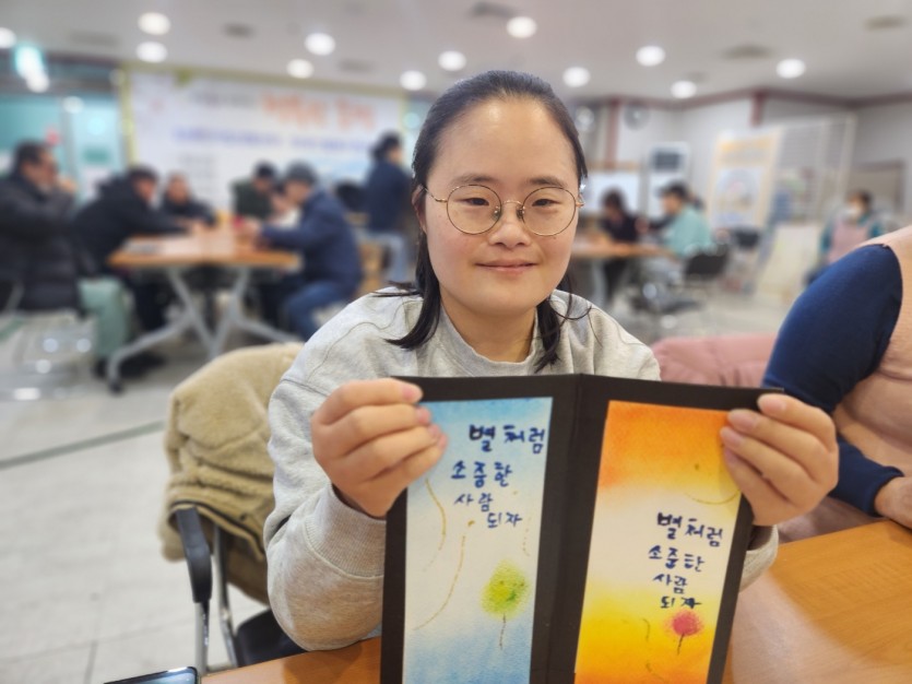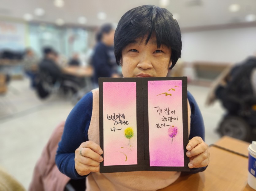 2025년 12월 02일 미술교실(캘리그라피) 페이지 정보 작성자 햇빛촌 조회 239회 작성일 25-12-26 10:52 본문 2025년 12월 02일 미술교실(캘리그라피) 목록 이전글2026. 01. 27. 장애인자립지원기술교육(ILP) 원예교육 26.01.28 다음글2025년 12월 15일 2025년 하반기 사업보고회 25.12.26