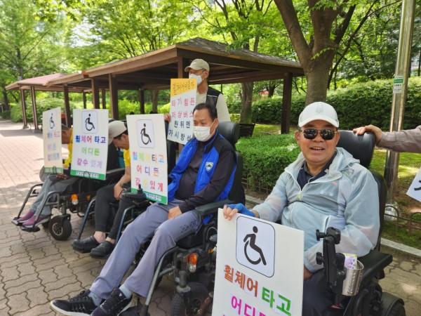 2024년 5월 27일 주엽역 호수공원방향 참여자들이 장애인 이동권 캠페인을 진행하였고