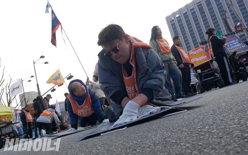 종로구 안국동 사거리에는 주최 측 추산 약 3만 명의 인파가 ‘윤석열 탄핵’을 외치며 운집해 있었다. 장애인들은 질서정연하게 운집한 시민 한가운데에서 온몸으로 기었다. 간간이 “누구야?”, “전장연이래, 전장연.”, “왜 저래?” 하는 목소리가 들려오기도 했다.