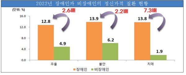 2022년 장애인과 비장애인의 정신과적 질환 현황.ⓒ국립재활원