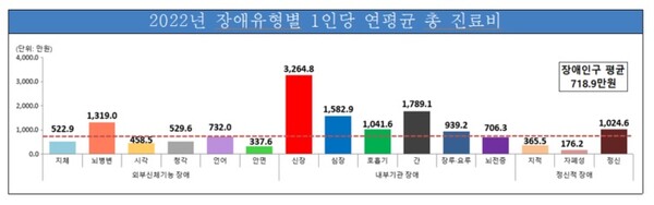 2022년 장애유형별 1인당 연평균 총 진료비.ⓒ국립재활원