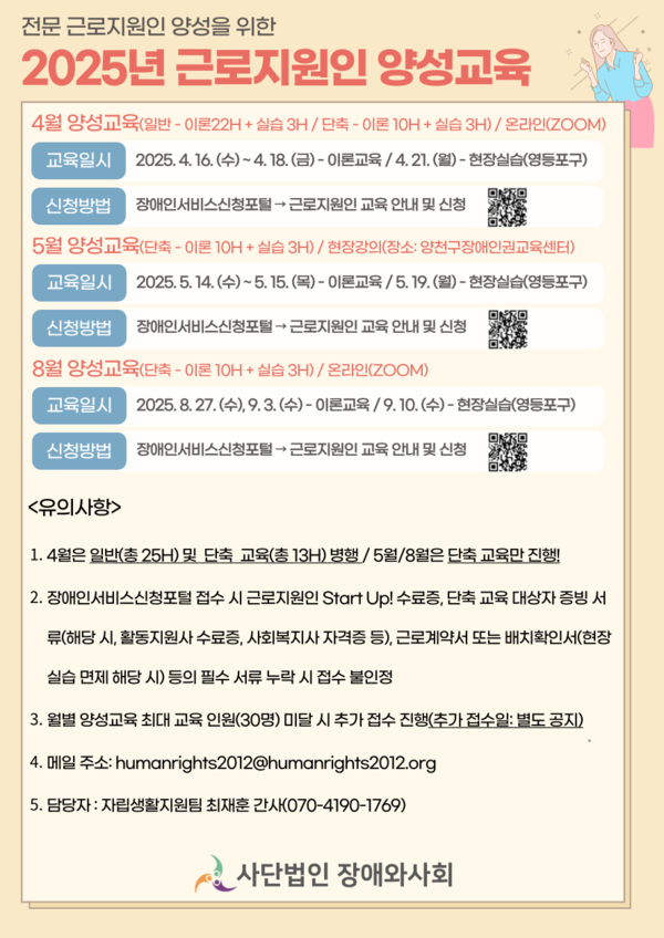 장애와사회, 2025년 근로지원인 양성교육 교육생 모집