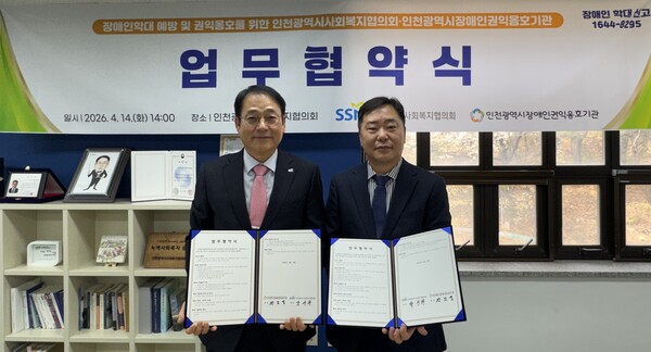 【에이블뉴스 이슬기 기자】인천시장애인권익옹호기관이 인천시사회복지협의회와 업무협약을 체결해 장애인 학대 예방과 대응 체계 강화에 힘을 모은다고 22일 밝혔다.