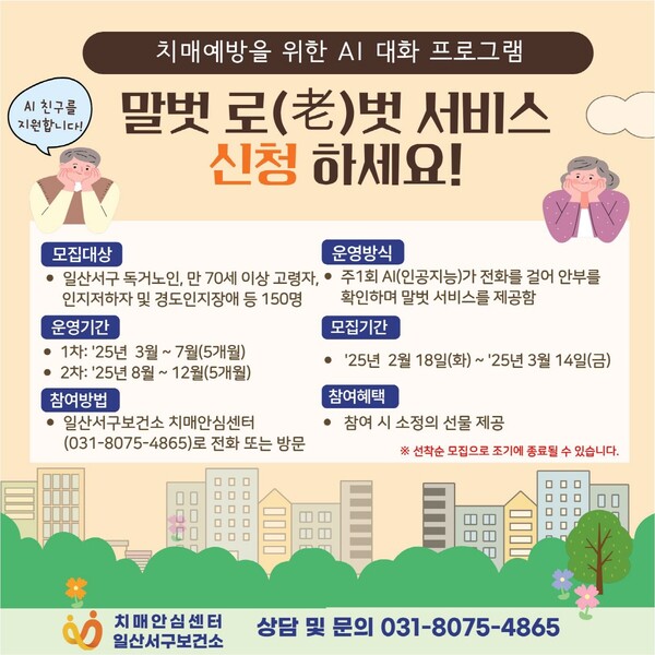 고양시 일산서구보건소, ‘인공지능(AI) 말벗 로(老)벗 서비스’참여 대상자 모집