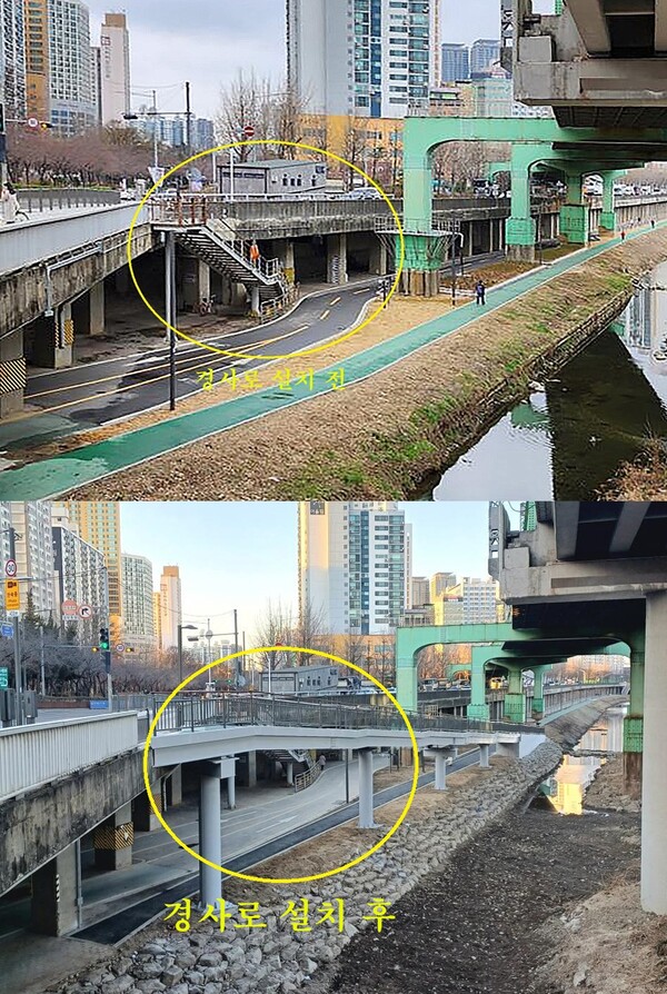 한편, 구로구는 지난 2022년 목감천 광복교를 시작으로 2023년 안양천 장미공원, 안양천 물놀이장 등 총 3곳에 경사로를 설치한 바 있다.