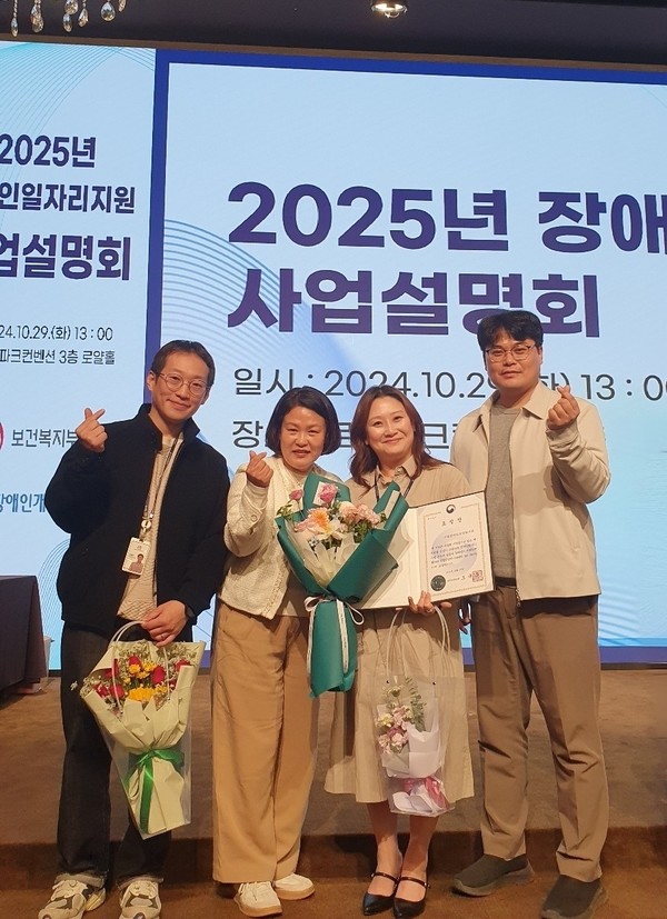 복지관은 장애인일자리사업을 통해 장애 당사자들의 욕구에 기반한 다양한 직무를 개발하고 일반고용시장전환에 공헌한 점을 높이 평가받아 29일, ‘2025년 장애인일자리 사업설명회’를 통해 장애인일자리 유공 장관표창을 수상했다.