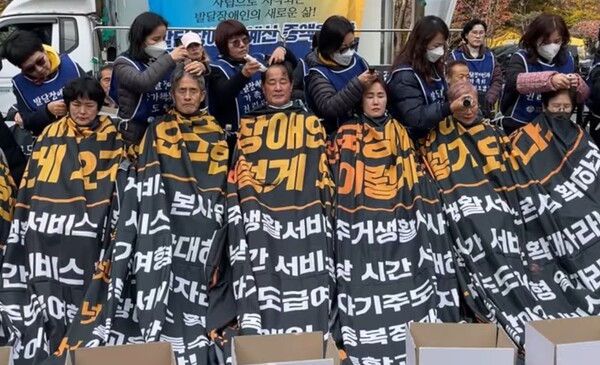 한편 이들은 오는 20일부터 12월 10일까지 매일 국회 앞에서 주거생활서비스 예산 117억 예산 증액의 의미를 117배로 표현하는 제자리 오체투지를 전개해 나갈 예정이다.