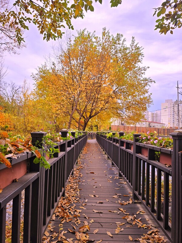 불암산 나비정원의 나무데크 산책로는 낙엽과 단풍으로 물들어 가을의 정취를 물씬 느낄 수 있는 공간입니다. 데크길은 폭이 넓고 완만하게 설계되어 휠체어나 유모차를 사용하는 분들도 편안하게 이동할 수 있으며, 길을 따라 걷다 보면 중간중간 쉼터와 벤치가 마련되어 있어 잠시 쉬어가며 가을의 풍경을 감상할 수 있습니다.