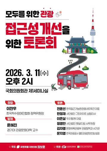 토론회를 공동주최한 최보윤 의원(국민의힘)은 “관광 4법 개정을 통해 무장애 관광 확대 및 강화를 위한 법적 근거를 마련했다”면서도, “법률 개정에 그치지 않고, 장애인 등 시민이 체감할 수 있도록 제도 개선을 위해 노력하겠다”고 밝혔다.