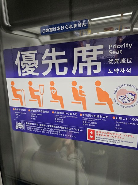 최근 한국 지하철에서도 장애인 이동 비중이 늘었기는 하지만, 도쿄 지하철에서도 흰 지팡이 등 다양한 장애인 이동 장면을 봤습니다. 다만 발달장애인 등 정신적 장애인이 얼마큼 있었을는지는 모르겠지만 말입니다. 그리고 일본 지하철 노약자석에는 ‘내부장애인’이라는 표시도 살짝 있어서 이 점도 놀란 지점이었습니다. 일본에서 내부장애인에 대한 인지가 꽤 된 모양이었습니다.