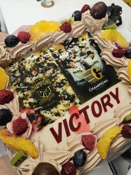일본 발달장애인들의 프로야구 대화 모임에 참석했을 때 공개된 케이크로, 일본 프로야구 양대리그 우승팀인 소프트뱅크 호크스와 요미우리 자이언츠의 정규리그 우승 포스터를 새겨놓았다. (그러나 요미우리 자이언츠는 플레이오프 격의 게임에서 요코하마 베이스타즈에 패배하면서 결승, 즉 일본시리즈 진출에는 실패했다) ⓒ장지용