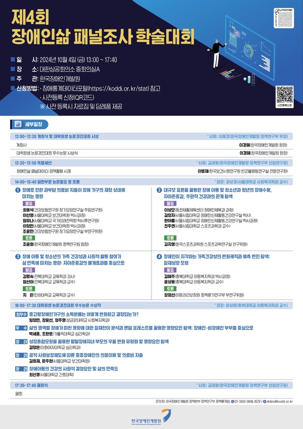 학술대회 사전등록 신청은 10월 3일 오후 6시까지 장애통계데이터포털(https://koddi.or.kr/stat)에서 할 수 있다.