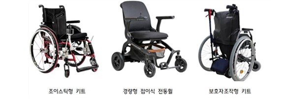 전동화키트 부착 수동휠체어는 일상에서 접할 수 있는 휠체어보다 가벼운 수동휠체어에 전동화 키트가 부착되어 오른손 또는 왼손으로 조이스틱을 조작해 비장애인의 보행 속도로 작동한다. 손으로 조작할 수 있는 수동휠체어 사용자에게 적합한 신체적 편리를 제공한다.
