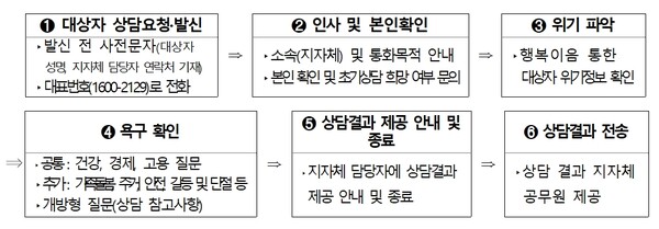 시범사업 참여 101개 지자체는 위기상황에 처한 주민에게 상담전화를 하기 전에 초기상담을 진행한다는 문자메시지를 시스템으로 발송, 전화를 받을 수 있도록 사전에 안내한다. 또한 긴급하게 복지도움이 필요한 가구가 읍면동 주민센터에 신속히 연락할 수 있도록 문자메시지에 담당공무원 연락처를 남겨둔다.