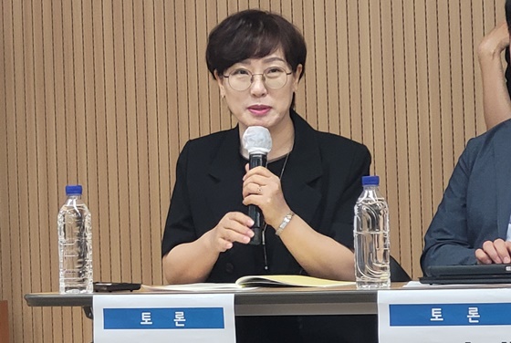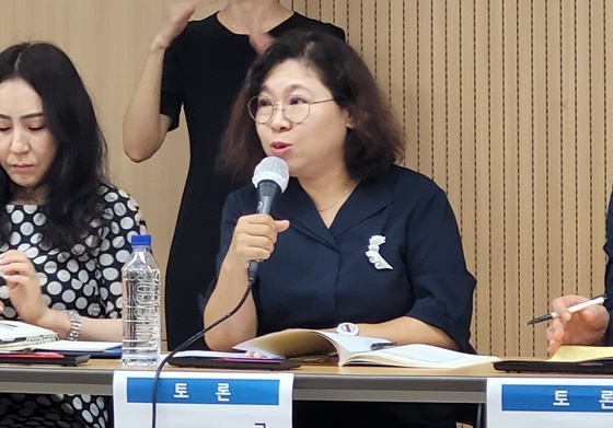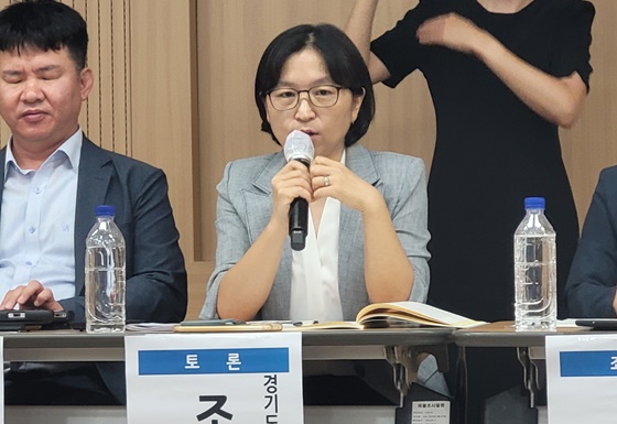 9일 오전 10시 서울 여의도 이룸센터에서 개최된 ‘고령장애인 정책 실현전략 마련 토론회’에서 토론하는 경기도장애인복지단체연합회 조은숙 사무국장. ©에이블뉴스