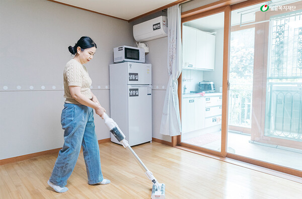 일상생활 훈련(청소하기)중인 이용자. ©밀알복지재단