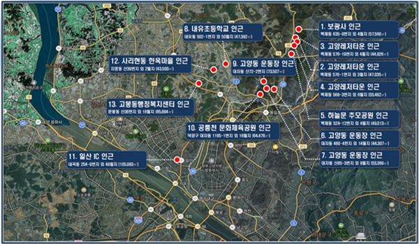 오는 2026년부터 수도권의 모든 지자체들이 인천에 있는 수도권매립지에 생활폐기물 직매립이 금지로 자체 소각장 건립에 나섰고, 고양시도 4만3천5백㎡ 이상의 부지에 하루 630톤 규모 소각시설과 140톤 규모의 재활용 선별시설을 조성할 계획에 따라 관내 13개 후보지 중 지난 4월 주민동의율 50% 이상을 얻은 후보지 5개소(위 사진의 1·6·7·10·11후보지)를 1차로 선정하고 5월 30일 입지선정위원회에서 3곳으로 압축, 전략환경영향평가 용역을 내년 3월까지 실시하여 그 결과에 따라 최종후보지를 결정할 예정이다.