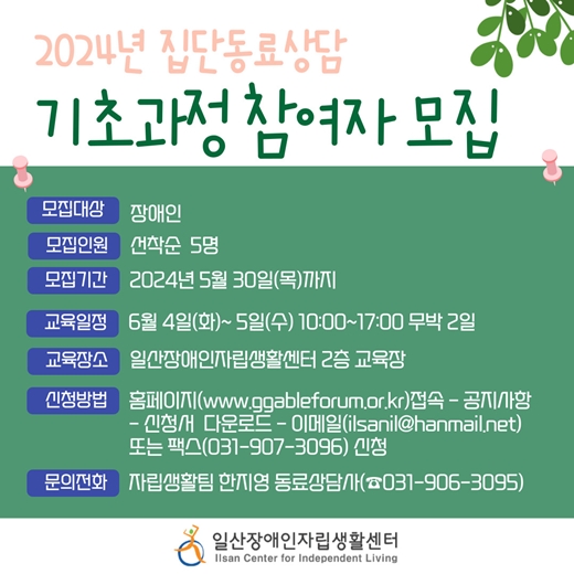 일산IL센터, ‘2024 집단동료상담 기초과정’ 참여자 모집