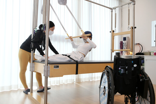 장애인이 다양한 기구를 이용할 때 편안하게 트랜스퍼할 수 있도록 충분한 공간을 마련하는 것이 중요하다.