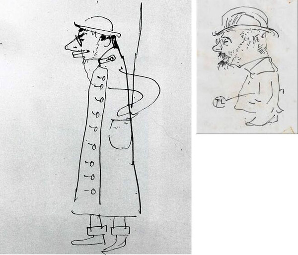 간단한 데생은 만화처럼 유머러스하게 그렸다. 자신의 모습을 스스로 웃음의 대상으로 삼아 콤플렉스를 회피하는 방법으로 지혜롭게 극복해 나간 것이다.