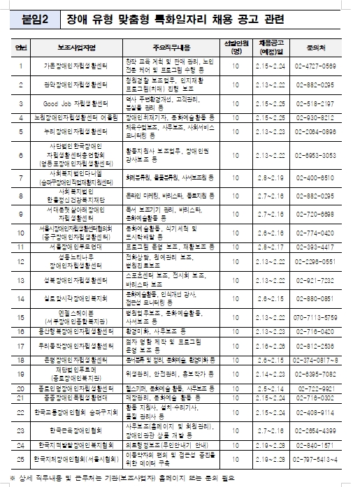 서울시, ‘2024년 장애유형 맞춤형 특화일자리’ 참여자 250명 모집