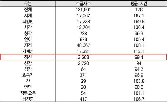 정신장애인 활동지원서비스 평균 89.4시간‥15개 장애 유형 중 꼴찌