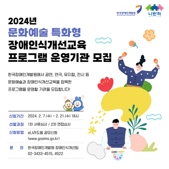 개발원, ‘문화예술 특화형 장애인식개선교육 프로그램 운영기관’ 모집