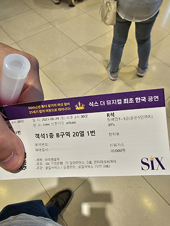 필자가 2023년 6월에 관람한 '식스 더 뮤지컬' 관람 입장권. ⓒ장지용
