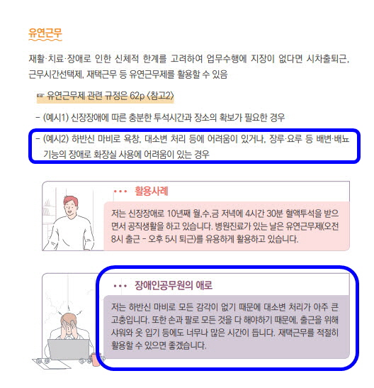 나의 의견이 반영되어 나온 장애인 공무원 인사매뉴얼 중 유연근무 관련 내용. ⓒ 박혜정