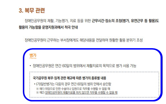 나의 의견이 반영되어 나온 장애인 공무원 인사매뉴얼 중 복무 관련 내용. ⓒ 박혜정