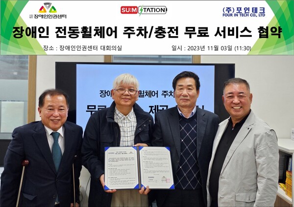 하지만 내년부터는 집이나 사무실이 아닌 거리에서도 충전을 할 수 있게 된다. (주)포인테크와 (사)장애인인권센터는 지난 3일 오전 11시 30분 장애인인권센터 회의실에서 만나 장애인용 전동휠체어 무료충전 서비스 업무협약을 맺었다.