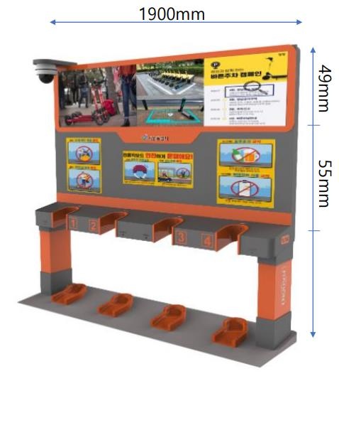 PM 스테이션의 모양. 아래는 주차공간과 충전 장치가 있고 상부는 광고(공익광고 포함)판으로 활용되고 있다. ©서인환