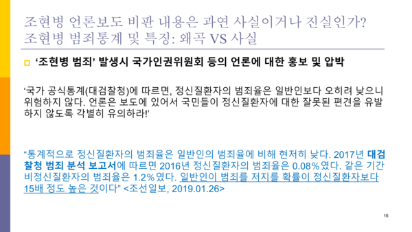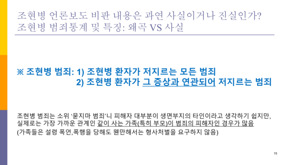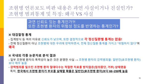 이에 필자는 당사자 단체의 그런 자료가 얼마나 허술하고 반박 근거가 될 수 없는지를 무겁지만 담담한 마음으로 말하고자 한다. 필자의 가족도 조현병을 가진 정신장애인이다.