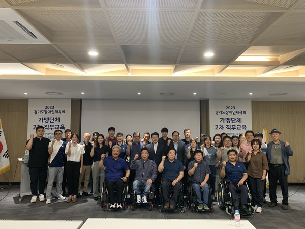 경기도장애인체육회(회장 : 김동연)는 종목별 경기단체와 원활한 소통과 법정 의무교육을 통한 역량강화를 위해 8월 24일(목) 수원 컨벤션센터에서 「2023년 가맹단체 2차 직무교육」을 개최했다.