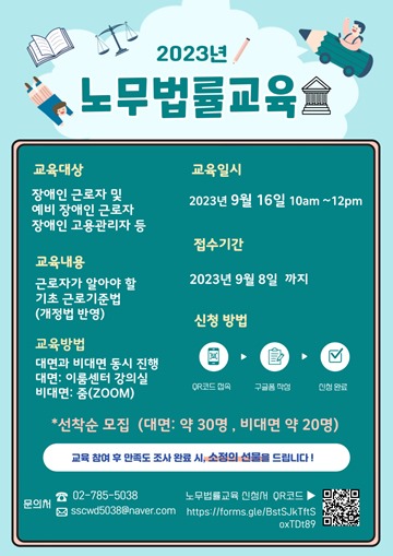 서울장애인근로자지원센터, ‘노무법률교육’ 참여자 모집