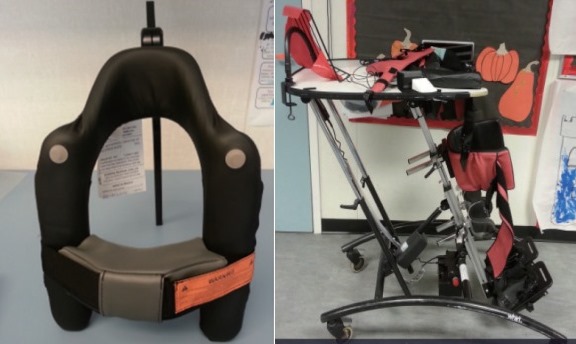예를 들어 목, 어깨, 가슴 조정 기기(Adjustable aids: neck, shoulder, chin pad)는 머리 조절의 어려움으로 고개를 계속해서 숙이는 학생들이 턱 받침대를 어깨당김 조절대에 장착하고 연결하여 고개를 들고 수업을 듣는데 활용된다.