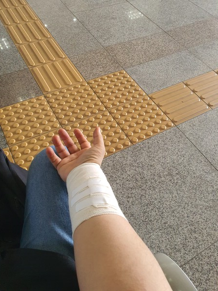 동정맥루 시술 후 필자. ©강민