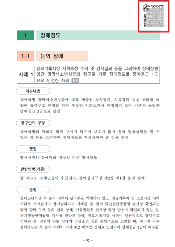 공단은 2022년에도 발간한 바 있는 권리구제 사례집을 올해는 시각장애인도 편리하게 활용할 수 있도록 음성변환바코드를 삽입한 전자책(e-book)으로 제작했다.