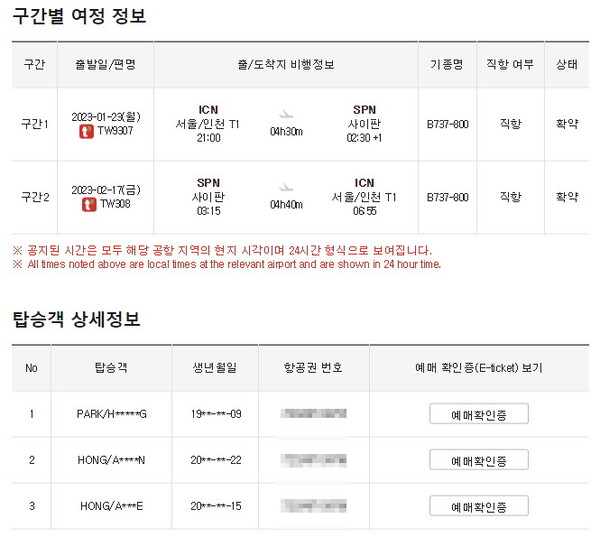 휠체어 엄마와 초등 아이 둘의 사이판 항공권. ⓒ 박혜정