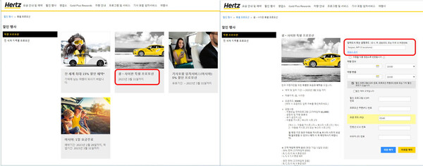 허츠(Hertz) 렌터카 장애인 차량 예약 방법 - 준중형급 차량을 클릭하면, 핸드컨트롤을 무료로 추가가 가능하다. ⓒ 박혜정