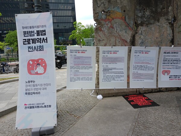 지원사노조는 “현장의 문제에 대해 노동부가 지도할 것을 요구했지만, 노동부는 노동시간의 문제냐, 소정근로의 문제냐를 두고 부서간에 책임을 미루고, 특별근로감독 요구에 대해서도 묵묵부답”이라면서 “이번 전시회를 통해 불법편법 근로계약서의 실정을 알릴 것”이라고 전시 취지를 밝혔다.