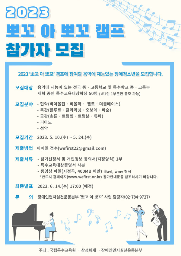 모집 대상은 전국의 음악 재능을 가진 전국 중‧고등학교와 특수학교 중‧고등부 재학 특수교육 대상자 50명이다.