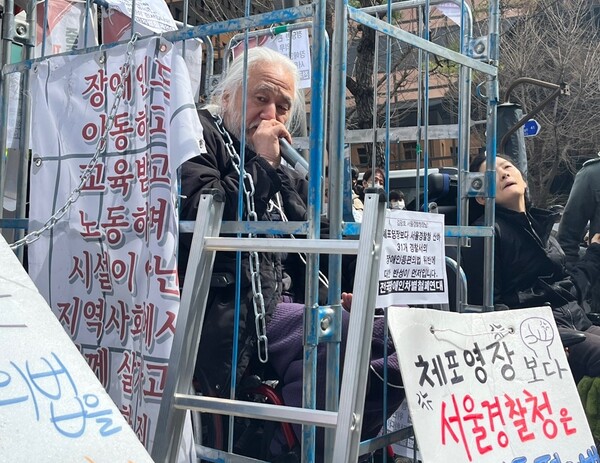 하지만 전장연이 파악하기로는 서울 시내 경찰서 31곳 중 혜화경찰서 등 10곳은 엘리베이터가 없다. 경찰 측은 편의시설이 갖춰진 남대문경찰서로 전장연 사건을 모두 이관했지만, 이마저도 ‘꼼수’라며 거부했다.
