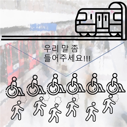 장애인 지하철 시위를 바라보는 장애인의 시선